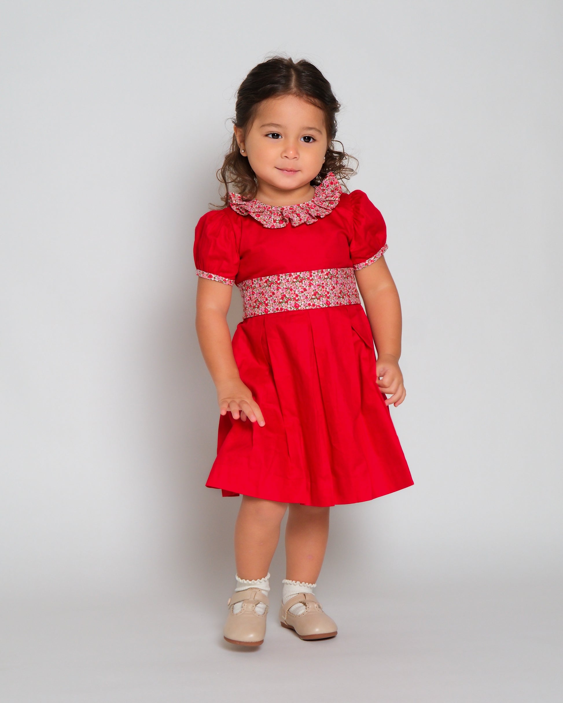 Add a pop of festive color to your holidays with our Poppy Christmas Dress! This vibrant red dress features a stunning floral belt that ties as a bow at the back and a playful ruffled collar for a fun and feminine touch. Perfect for any holiday occasion.